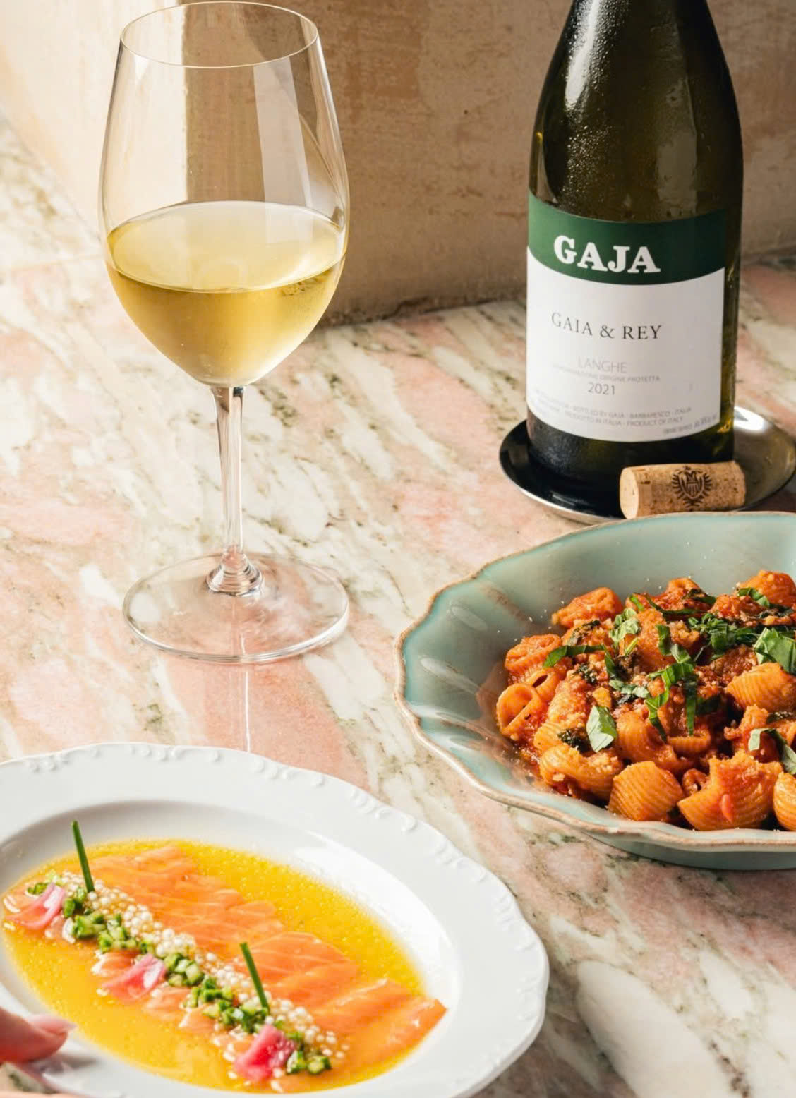 Casadonna’s menu blends traditional Riviera-style Italian dishes with modern touches, featuring King Crab Tortellini, Short Rib Pappardelle, Black Truffle Risotto, and premium steaks like American Wagyu Ribeye. Fresh, locally sourced ingredients are used in every dish.